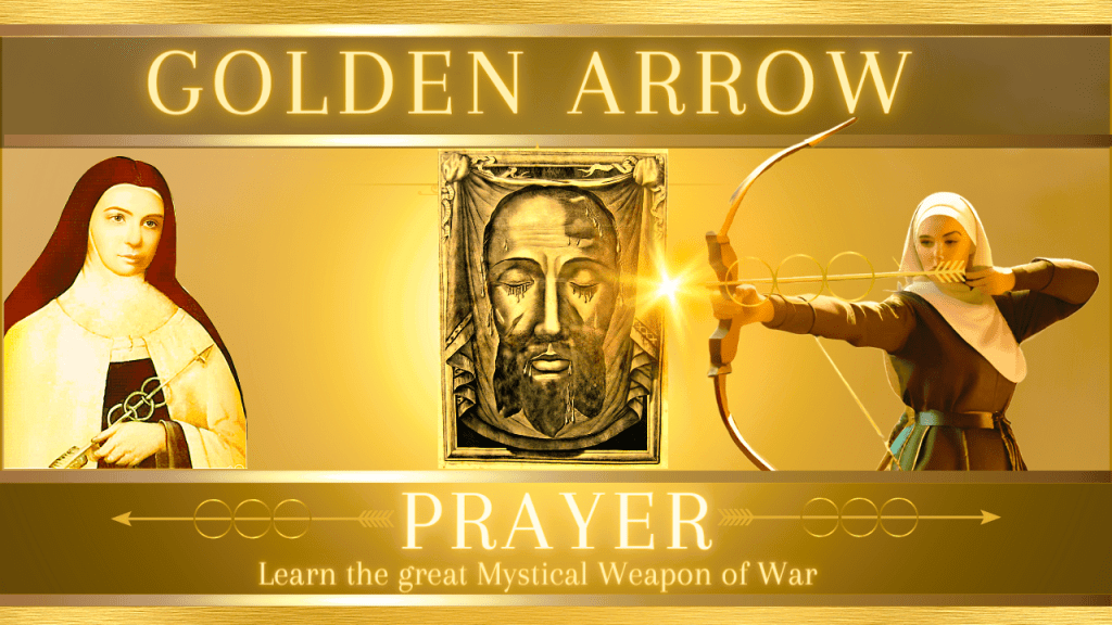 The Golden Arrow prayer is the sharpest and most powerful of all spiritual arrows. Sister Marie of St. Peter saw in a vision that this Golden Arrow had the power to wound the Heart of Jesus “delightfully”.
