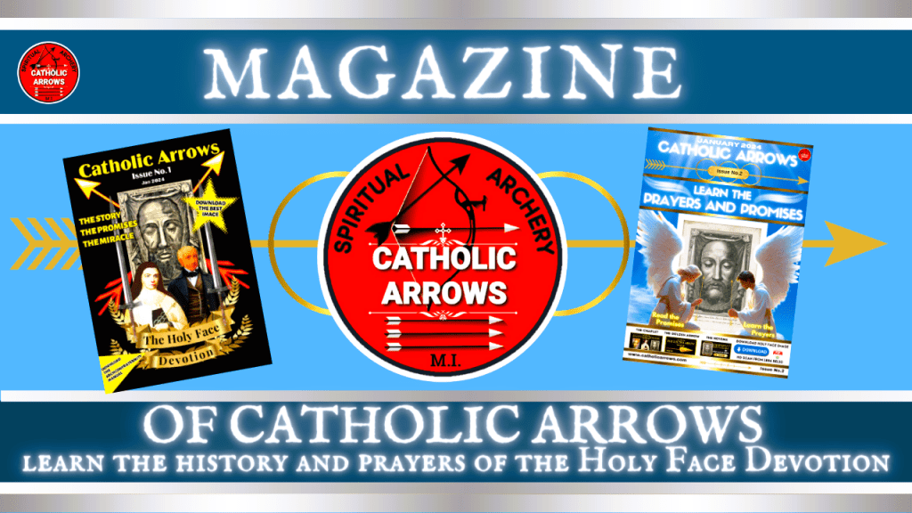 Catholic Arrows is a member of the Armada of the Holy Face, a Catholic lay apostolate with the mission of uniting all Holy Face apostolates into one global fleet, to share resources, work collectively on projects, and share ideas on ways to promote the Holy Face Devotion and promote and support the Archconfraternity of the Holy Face and other Holy Face apostolates.