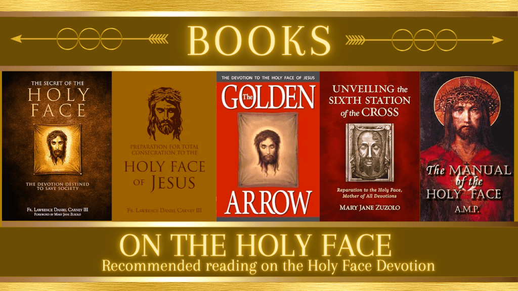 There are many great books on the Holy Face Devotion. Historically, the most popular is the “Golden Arrow” book by Dorothy Scallan. More recently, Father Carney published “Preparation for Total Consecration to the Holy Face” which provides a 33-day period of consecration.