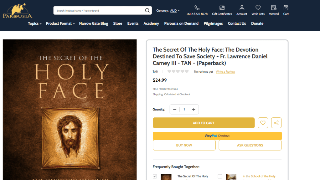 Below is a list of various apostolates and organisation in Australia which promote the Holy Face devotion.
