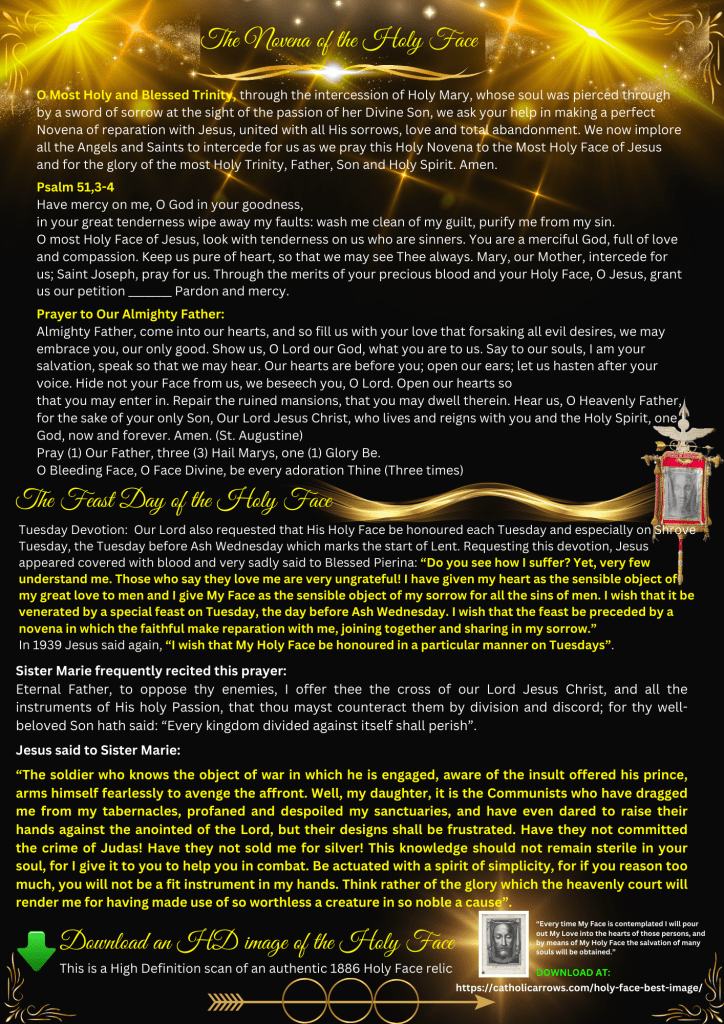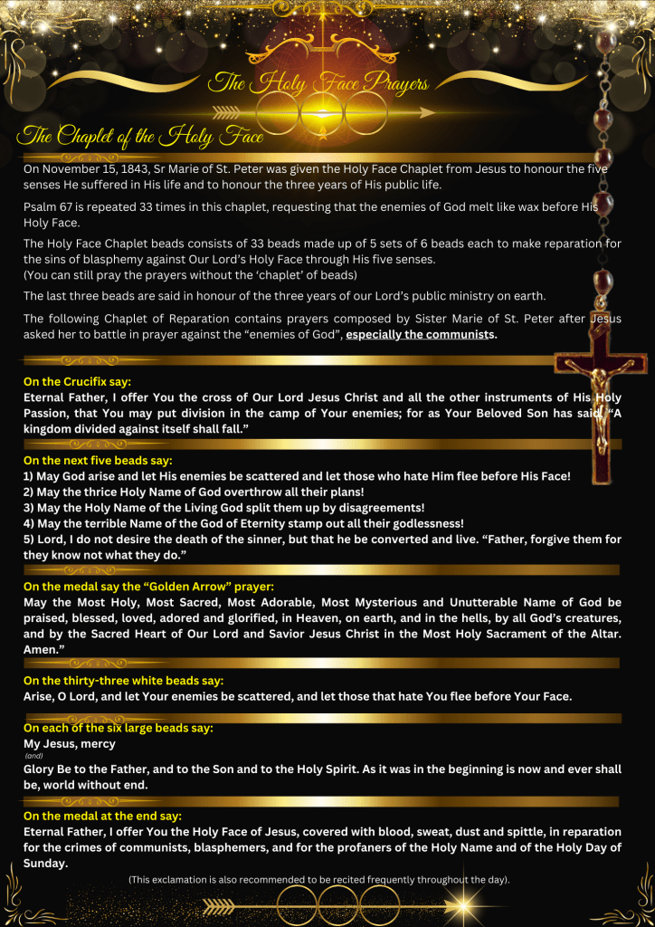 The Holy Face Devotion as revealed by Jesus to Sister Marie of St. Peter