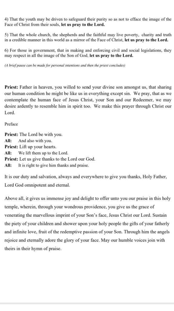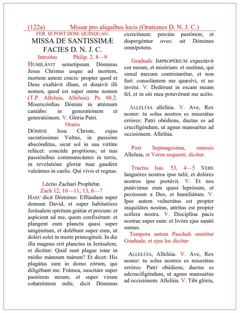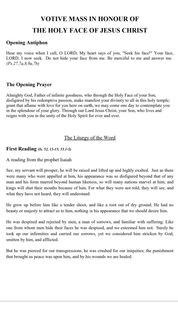 THE VOTIVE MASS IN HONOUR OF THE HOLY FACE OF JESUS CHRIST